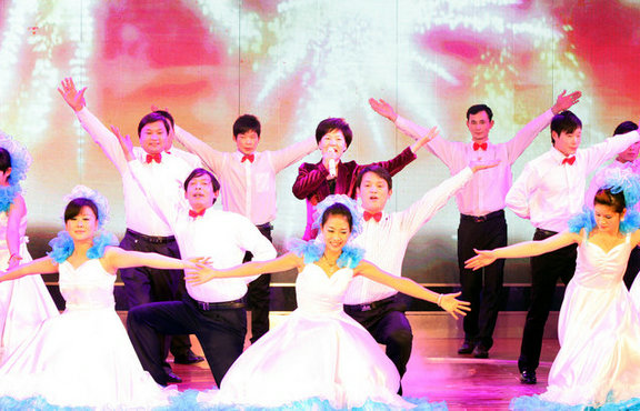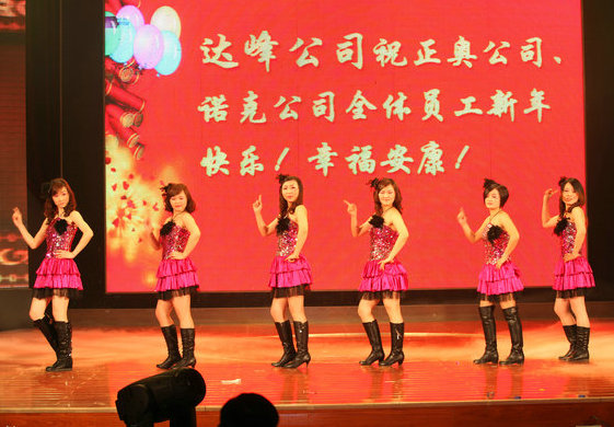 晚會(huì)在喜慶的歌伴舞《美麗的心情》中拉開(kāi)帷幕,也拉開(kāi)了2012年新的開(kāi)始;一線工人《時(shí)尚秀表演》藝術(shù)化的再現(xiàn)工人快樂(lè)勞動(dòng)過(guò)程,展現(xiàn)了公司青年職工的青春與活力;此次晚會(huì)還特別邀請(qǐng)了邁克爾杰克遜的模仿秀,恒通公司、達(dá)峰公司選送的精彩節(jié)目給觀眾帶來(lái)無(wú)窮的樂(lè)趣;由公司領(lǐng)導(dǎo)王榮華領(lǐng)銜表演的歌曲聯(lián)唱給大家留下了深刻的印象,博得陣陣喝彩;特別是公司總經(jīng)理喬虹演唱、職工伴舞的《今夜無(wú)眠》節(jié)目將晚會(huì)推向了高潮,讓大家仿佛置身于中央春節(jié)聯(lián)歡晚會(huì)之中,晚會(huì)抽獎(jiǎng)節(jié)目再次把晚會(huì)氣氛推向高潮。